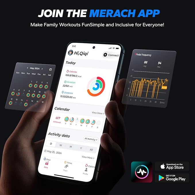 • Smart Data Monitoring: The large screen monitor clearly displays workout data, providing real-time tracking of your progress. Connect via Bluetooth to the MERACH APP to easily record and analyze your performance.