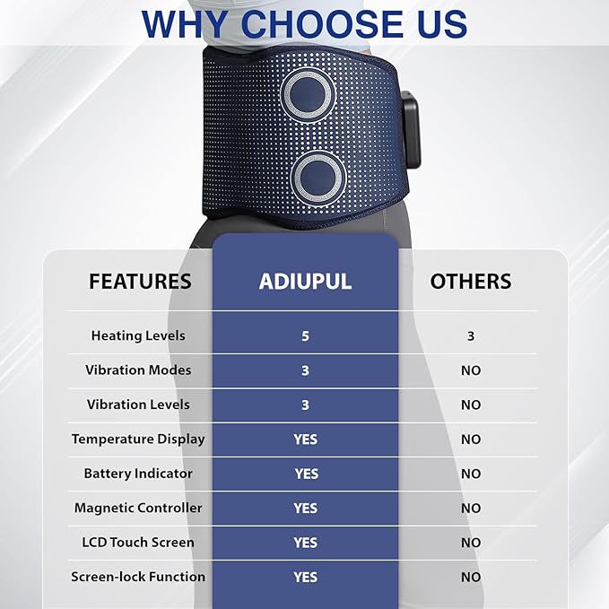 • 【Touch Screen Control】- This back massager belt for back pain relief is extremely user-friendly. It features an LED touch screen controller that allows you to easily select the heating or vibration function with just a single touch. The massager is equipped with an auto-off feature that activates after 20 minutes of use. You have the flexibility to use the massage and heating functions independently or together for a customized experience.