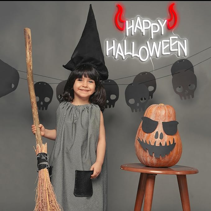 • Happy Halloween: White Happy Halloween paired with unique red small corner shaped neon light signs complement the horror and mystery themes of Halloween, while bright colors can create a more vivid and attractive visual effect, making your holiday full of fun