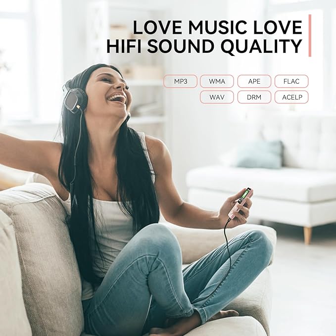• 【Lossless sound quality】Support formats:MP3, WMA, OGG,WAV, APE, FLAC, AAC-LC, ACELP.【Note It does not directly support Audiobook and iTunes.】Built-in speaker, Brings you amazing listening experience. [Tips: First, long press the "VOL" button to enter the volume control, then press the left or right button to increase or decrease the volume.]