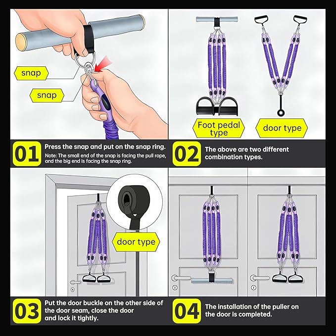 • ✅Save on Gym Fees-Use our multifunction resistance band foot plate set for whole body exercise. It includes 4pcs 25LB sports bands resistances, 1pc sturdy door anchor, 2pcs durable handles, 1pc ankle strap, 1pc handle, and 5pcs Loop Exercise Bands. If you're a full-time mother or have limited time, our sit up equipment and pull rope are suitable. The exercise bands are like a pocket gym. No need to worry about fitness level.