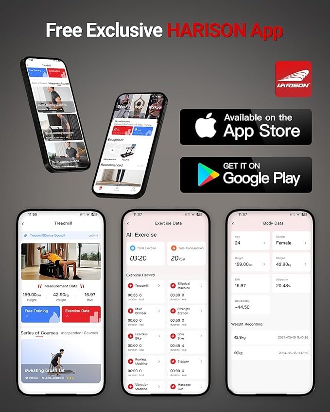 • HARISON Workout Courses: Transform your fitness journey with HARISON Workout Courses by downloading the HARISON App from our website, Play Store, or App Store. Our expert trainers will work closely with you to create a customized program for your elliptical machine, ensuring that each workout is aligned with your goals for maximum results.