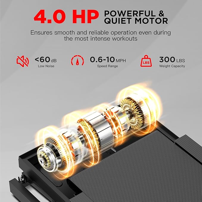 • Wider Speed Range: Equipped with a powerful 4HP motor, the folding treadmill supports a 0.6-10 MPH speed range. Whether you prefer walking, jogging, or sprinting, effortlessly switch between speeds to tailor your workout intensity to your fitness goals.