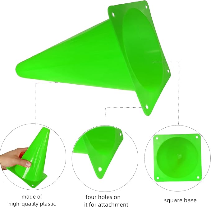 • Compact Storage: cones are hollow in the middle, when not in use is stacked in a mesh drawstring bag, easy storage and transportation, they can be easily transported to different locations, such as parks, gyms, schools, and sports fields.