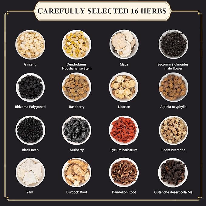 • 【Rich Ingredients】Our men's herbal tea is crafted with 16 carefully selected natural herbs, ensuring the use of whole material slices while avoiding any fragments. Ingredients include Ginseng, Mulberry, Maca, Yam, Goji Berry, Polygonatum Sibiricum, Eucommia, Raspberry, Licorice, and more, aimed at providing comprehensive health support.