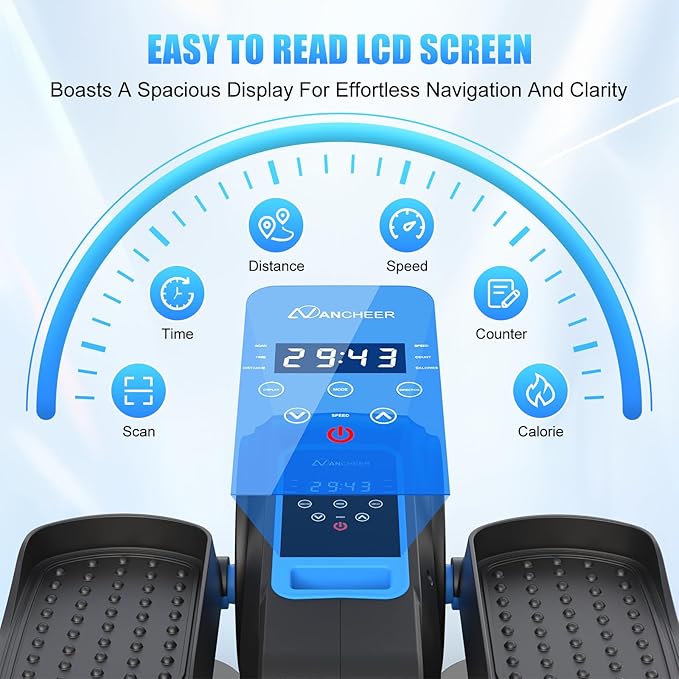 • Clear Display for Real-Time Workout Tracking: This ANCHEER ellipse leg exerciser as seen on tv that it features a built-in high-definition display that tracks and shows your workout data in real-time. Time, distance, speed, calories burned, and total laps are clearly displayed, helping you better monitor and adjust your exercise plan for optimal fitness results