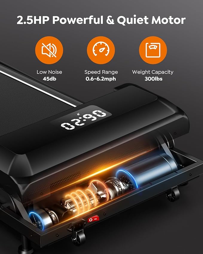 • 【Powerful and Quiet Motor】Incline walking pad treadmill boasts a robust 2.5HP motor, supporting up to 300 lbs. With a speed range of 0.6-6.2MPH, which can meet the fitness needs of you and your family at different stages better. Built-in cooling system and ultra-quiet operation, ideal for home and office use to achieve a combination of health and efficiency effortlessly. Easy to maintain your exercise routine even inclement weather!