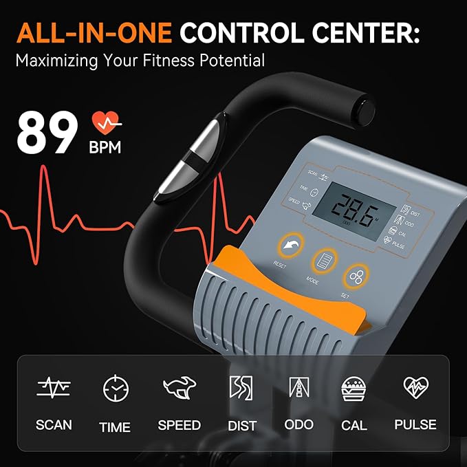 • SAVE SPACE & MOVE EASILY: The portable bike is easily adjustable, allowing for quick folding and upright. Its design enables easy storage in a small area, making it an ideal choice for small apartments or offices. The foldable bike comes with rollers on the front feet, facilitating effortless movement. Whether you're aiming to save space or seeking a portable exercise option, this workout bike for home gym is the ideal solution.