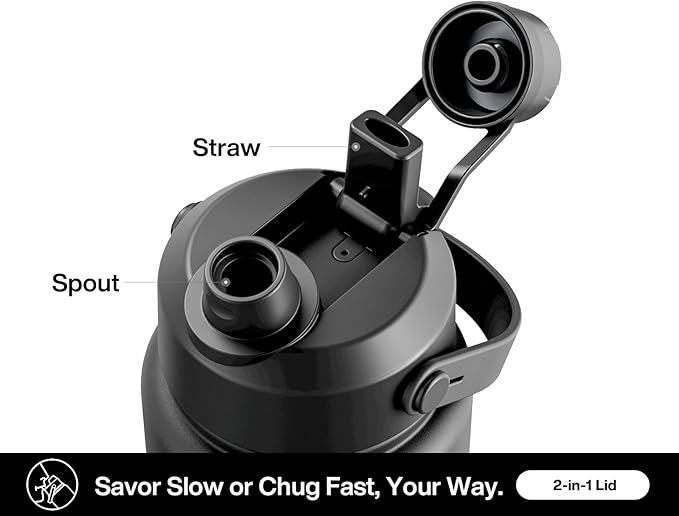 • Versatile 2-in-1 Lid: Features a straw for easy sipping and a spout for effortless pouring or chugging; simplifying beverage access whether it's a hot coffee or a cold drink