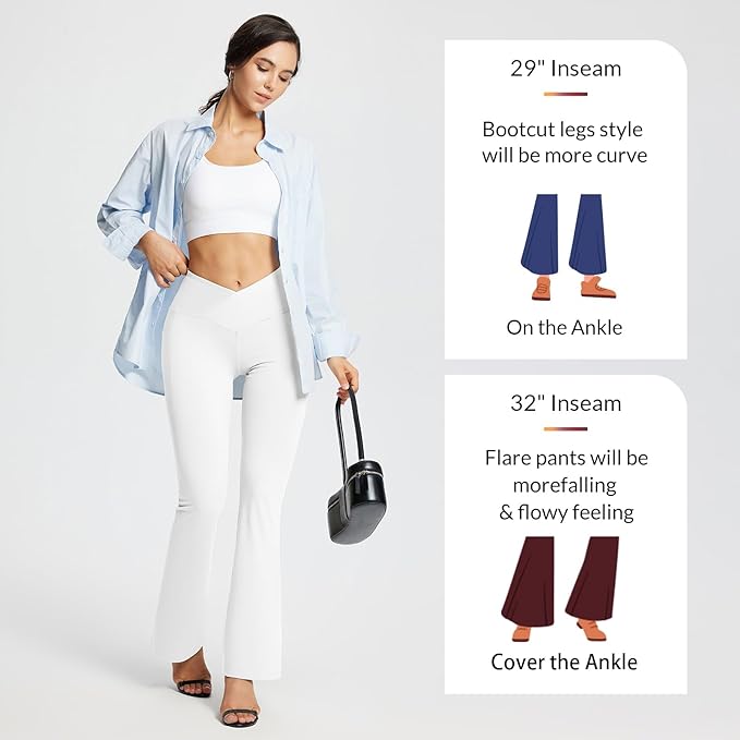 baleaf Women's V Crossover Flare Leggings with Pockets Yoga Pants High Waist Casual Workout Gym Bell Bottom Leggings