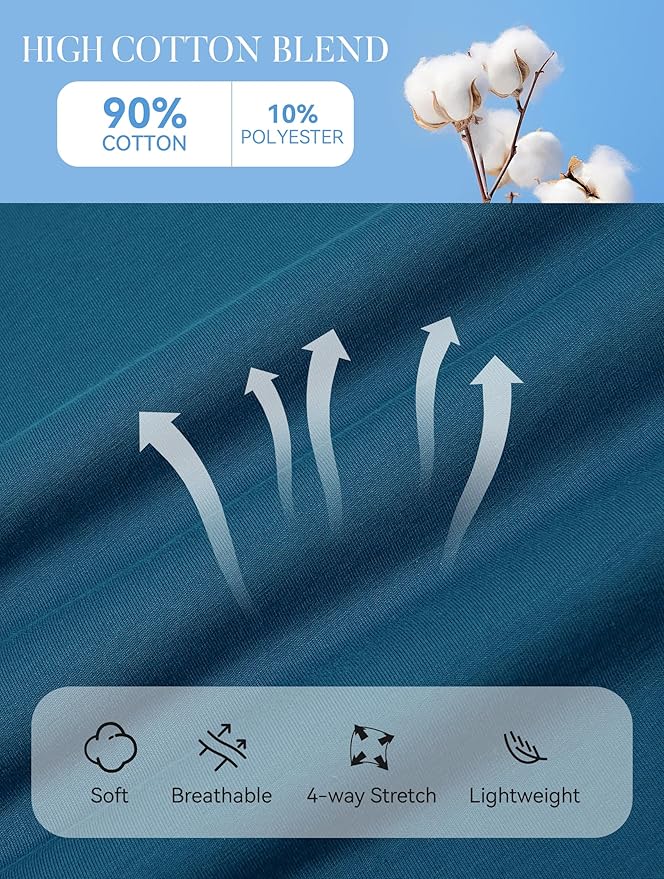 • Stretch Fit for All Body Types: The 10% spandex ensures a flexible fit that moves with your body, offering comfort and freedom, no matter your shape or size.