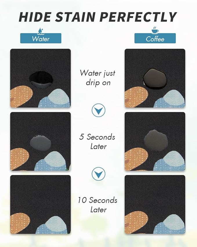 • SUPER ABSORBENT: Super absorbent soft diatomite can suck up water splashes and duping coffee instantly without messing up your countertop