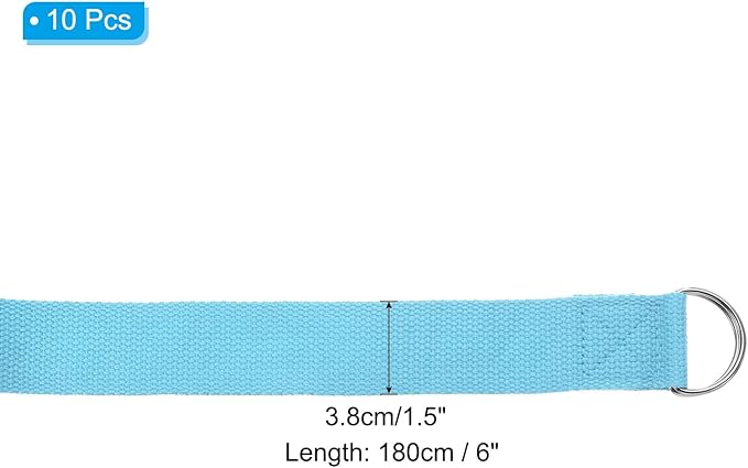• Color: Sky Blue; Material: Cotton; Length: 180cm / 6 Feet; Width: 3.8cm / 1.5 Inch; Packing List: 10Pcs x Yoga Bands