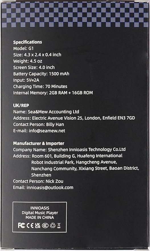 • Android MP3 player: The innioasis Spotify player is esigned with an 8-core processor, 2GB of RAM, and 16GB ROM for smooth program execution. It comes with a 64GB memory card and supports external storage expansion via a card slot, allowing for up to 1TB of additional space to meet users' storage needs.