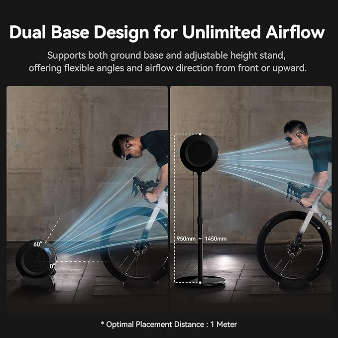 • 【Dual Base Design, Unlimited Airflow】It supports both ground base and adjustable height stand, offering flexible angles and airflow direction from front or upward. (Optimal Placement Distance: 1 Meter)