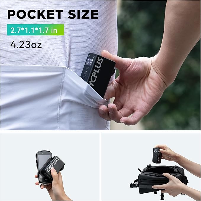 CYCPLUS AS2 PRO Tiny Bicycle Pump with Gauge, Max 120 PSI Electric Mini Pump, Auto Stop, with Presta and Schrader Valve for E-Bike, MTB, and Road Bike (2025 Updated Version)