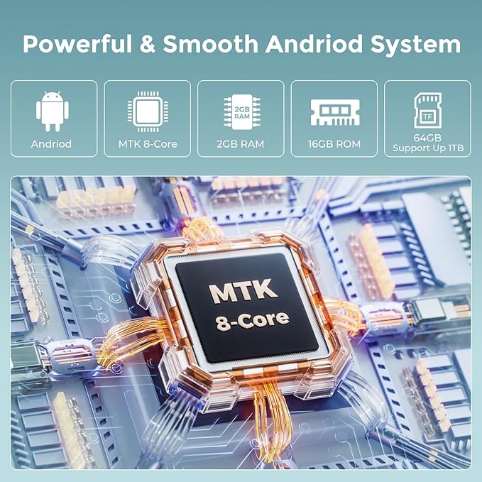 • Long Life Battery: The kid music player is equipped with a 1500mAh lithium battery that uses a low-power solution, allowing for up to 25 hours of continuous music playback (with wired earbuds) or 5 hours of video. It features a Type-C charging port, and it takes just 2 hours to fully charge.
