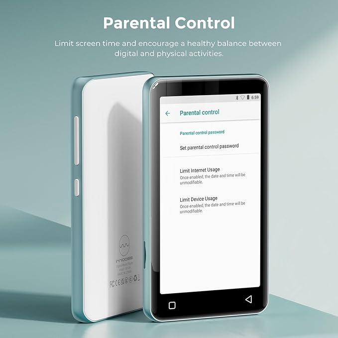 • Set up parental controls: The music player doesn't allow the installation of additional apps, which helps prevent kids from accessing inappropriate content. You can also uninstall any pre-installed apps you don’t want your kids to use, and set a reset lock to prevent the device from being restored. Additionally, you can limit the duration of both internet and player usage.