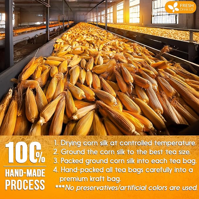 • ☘️ CONVENIENCE & ENJOYMENT: Corn Silk tea bags are perfect for busy lifestyles. Whether you're at home, at work, or traveling, you can easily enjoy the benefits and flavors of Corn Silk tea without the need for loose herbs or complicated brewing methods. It can be enjoyed hot or cold, and it is often sweetened with honey, sugar, or other sweeteners like Stevia leaves.