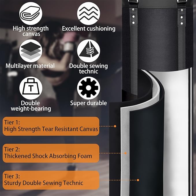 • EXCELLENT LOAD-BEARING CAPACITY: Our heavy-duty punching bags have four durable climbing straps sewn to the four side, This structure supper sturdy and more durable than other hanging punch bags,Not easy to tear, and has twice the Load-Bearing capacity of other kicking bags! it's strong enough to take years of constant blows