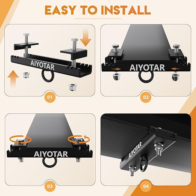 • Hassle-free Installation: Easy to set up and adjust without any specialized tools or expertise required.[Tool-Free Installation in Seconds] No drilling or permanent damage to beams! Simply adjust the jaws of the i-beam heavy bag mount to your beam's width, tighten the bolts, and secure-installation is done in minutes. Perfect for commercial gyms that need to reposition i beam mounting clamp over time or home users seeking a hassle-free setup