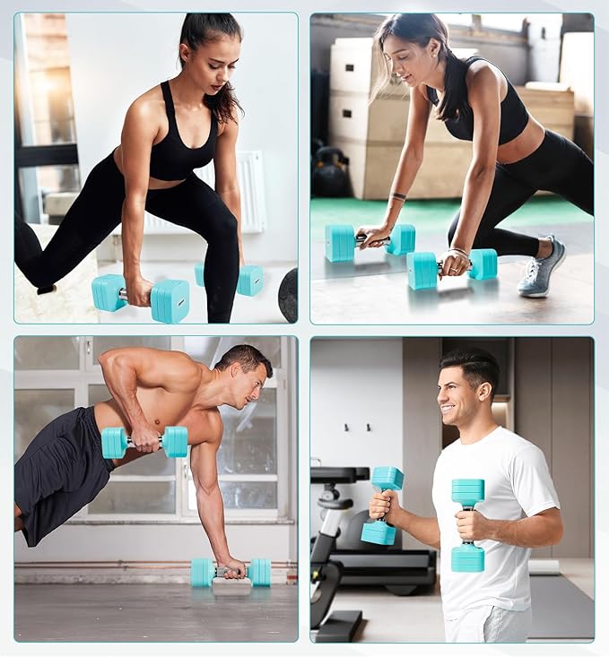 • 4 In 1 Adjustable Hand weights dumbbells set for men women. Our dumbbell sets consists of 8 weight 0.95lbs dumbbell plate, adjustable range is 4lb, 6lb, 8lb, 10lb each weight (A Pair 8lbs 12lbs 16lbs 20lbs).