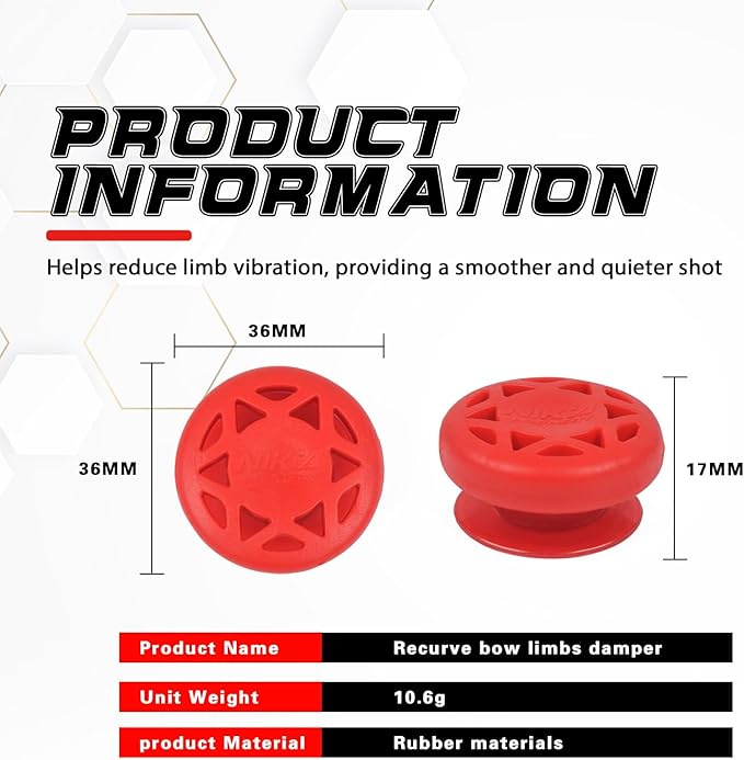 • Reduce vibration: Superior vibration and noise reduction for solid-limb recurve bows Helps produce a smoother and quieter shot by greatly reducing vibration caused from your limbs.