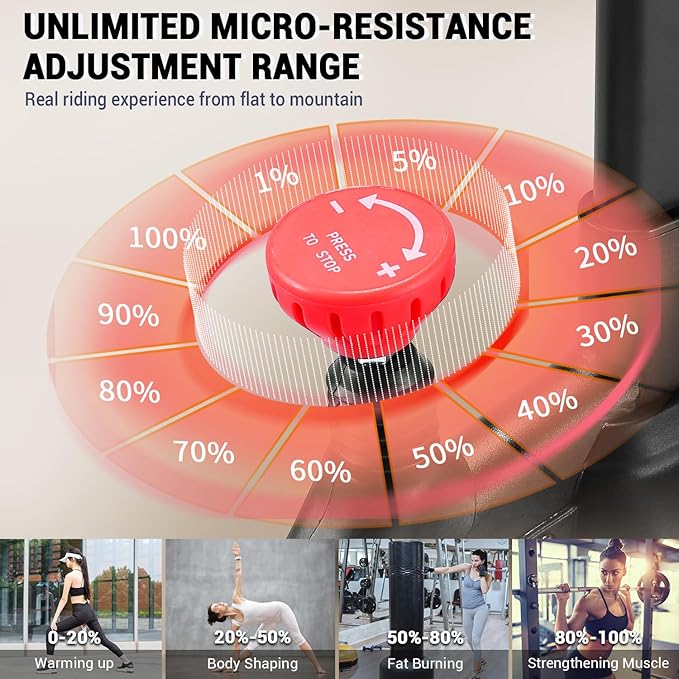 • [Customized Your Workout Plan] The monitor on our indoor cycling bike can capture your time, spd, dst, cal, odometer, and keep track of your exercise progress in real time. A dial tension knob to navigate the unlimited resistance levels makes you experience riding from the flat to the mountains. With a tablet holder you can watch spin class on your Tablet while riding to simulate traveling through France, gravel rides through the Utah backcountry, and even mountain bike rides in New Zealand.