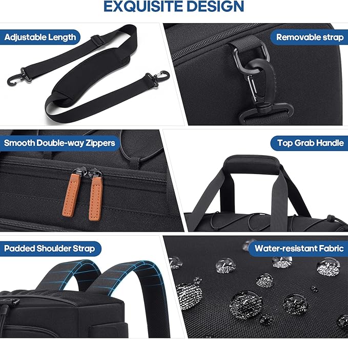 • Large Capacity with Smart Organization: Equipped with a laptop compartment (fits up to 13.3 inches), an independent shoe compartment, and multiple zippered pockets, this weekender bag helps keep all your essentials neatly organized, making it ideal for both short and long travels.