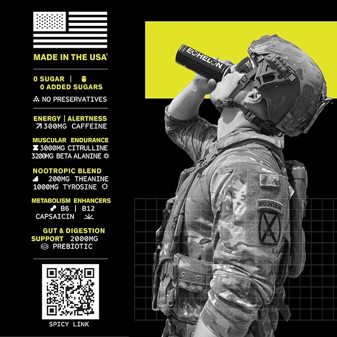 • Military-Developed Pre-Workout Energy Drink: Echelon was developed alongside over 2,000 U.S. Military service members to deliver sustained energy, focus, and endurance to power you through your workout and your entire day. Pack of 12.