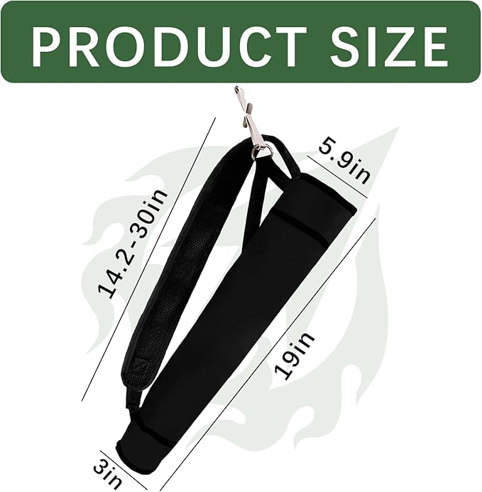 • Adjustable:The arrow holder length: approx. 18in, the opening diameter: approx. 3in. Fits up to 30 arrows. The straps of Arrow Quiver can easily be adjusted from 13" to about 30" to fit Youth and Adults.