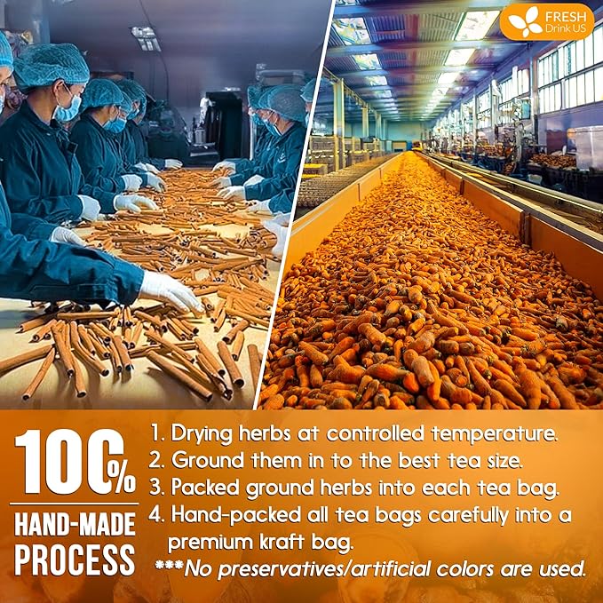 FreshDrinkUS, Premium 135 Turmeric Cinnamon Tea Bags, 100% Natural, Blend of Turmeric, and Cinnamon. Made with Natural Material Tea Bags. No Sugar. No Caffeine. Vegan.