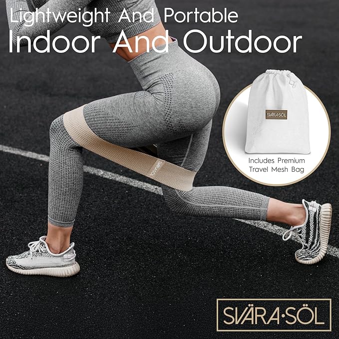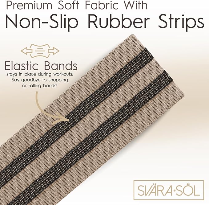 • PREMIUM QUALITY FABRIC RESISTANCE BANDS – Svära Söl fabric resistance bands are designed to withstand intense workouts without rolling or breaking. Crafted from durable, these bands provide superior grip and comfort during exercises like squats, lunges, and Pilates, giving you a workout experience that’s smoother and more effective than traditional rubber bands.
