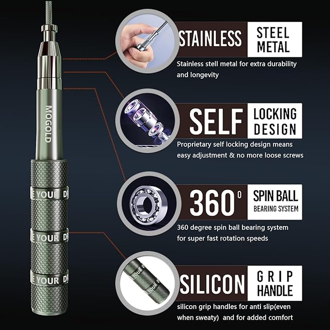 • 【Extremely Portable Feature】MOGOLD new design transformer chinese jump rope is a Retractable jumping rope Which can be Retracted freely to Jump and Put Away in carry case.It made by the stainless steel metal and have 1 pack 10ft replaceable cables,10cm*10cm free carry bag make it easy to carry to anywhere and anytime, including home gym and outdoor workouts,It's small enough to put in your cloths' pocket!!!