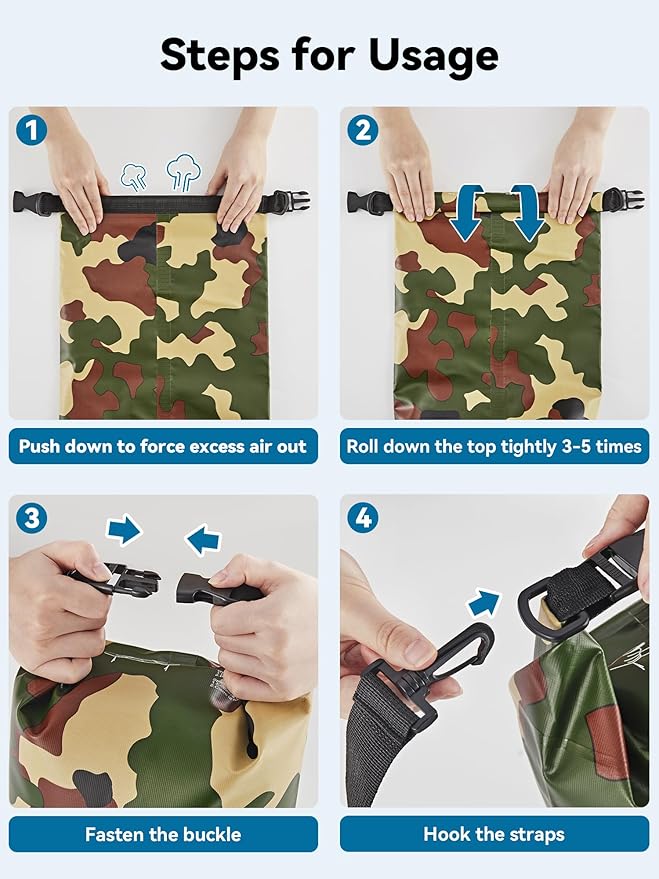 • Multifunctional - Equipped with adjustable shoulder straps for shoulder carrying and backpack, our dry bag is very convenient for different occasions like boating, rafting, kayaking, hiking, camping, fishing, mountaineering, etc. The lightweight dry bag won't weigh down your arms or shoulders