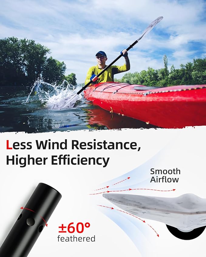 • 【LIGHTWEIGHT AND DURABLE 】The aluminum alloy shaft is known for its strength and ability to withstand the wear and tear of frequent use. In addition to its durability, the aluminum alloy shaft also offers better performance and more efficient paddling. PP blades are lightweight and indestructible blades offer flexibility and efficiency, making it easier for paddlers to navigate through the water with ease.