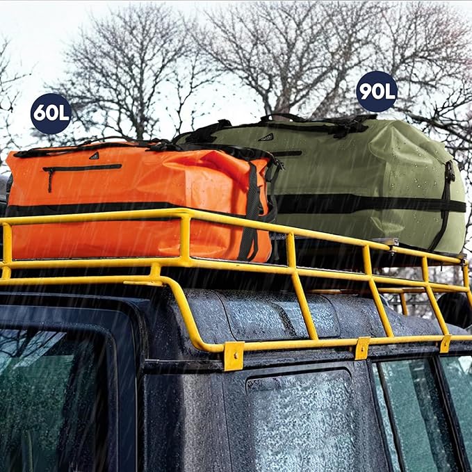 • Large Capacity with Multiple Pockets: Waterproof duffle 60L/90L with large main compartment provides plenty of room to hold your luggage/ski gear/camping essentials, 1 waterproof zipper front pocket accesses frequently needed items, 1 internal zipped pocket in the middle for storing your valuables, 2 inner mesh pockets on each side, convenient for you to organize your items
