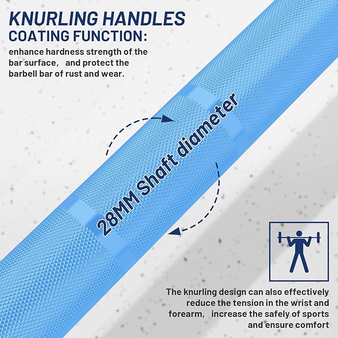 • Knurled Grip for Safety: A 28mm grip diameter with medium knurling provides a secure, non-slip hold for demanding weightlifting and powerlifting exercises