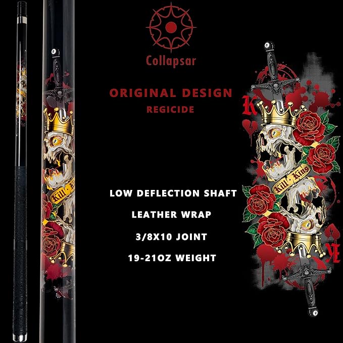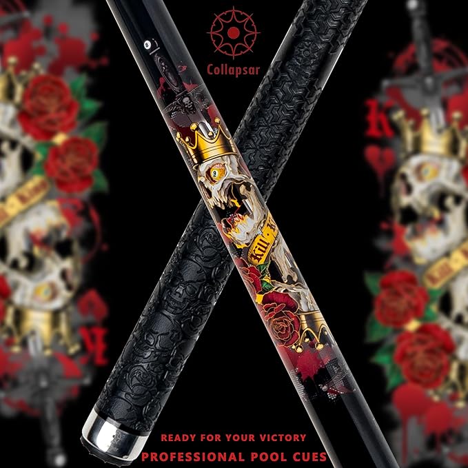 • COLLAPSAR 58" Original Skull Series Pool Cue Stick Come with a 1X1 Cue Case and joint protectors,Available in 19 - 21 ounce .