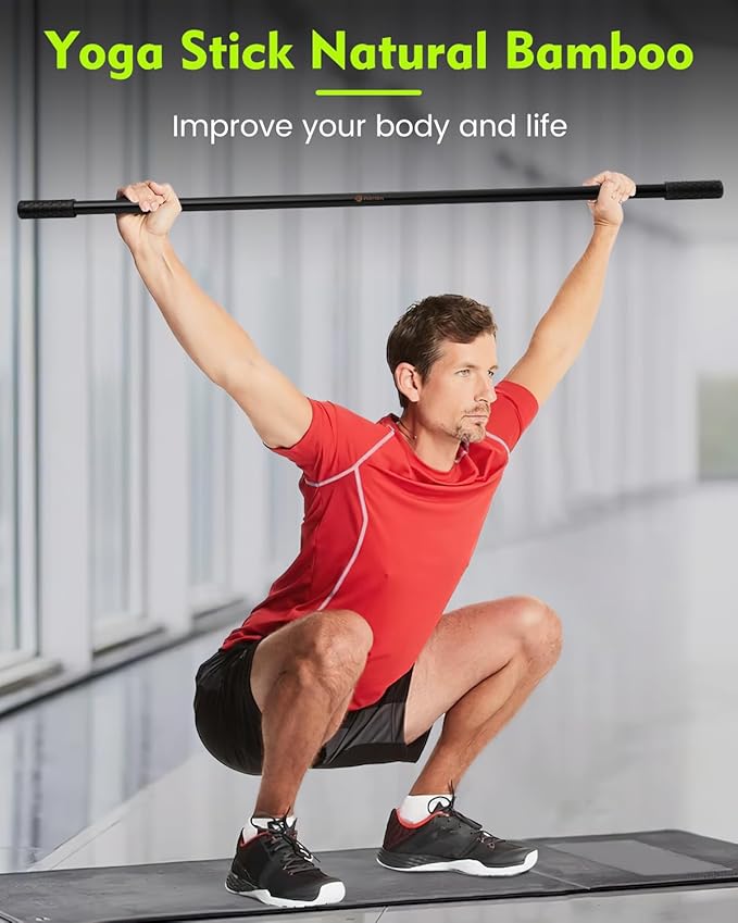 • Easy to Carry: The stretching stick is lightweight and weighing less than 2 lbs. Bamboo stick can be used in a yoga class or at home, it can be a good tool to keep your balance and correct or your body posture