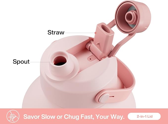 • Generous Capacity: 64 oz provides ample hydration for an entire day; it's ideal for sports, travel, or everyday use; Note: 64 oz does not fit in standard car cup holders