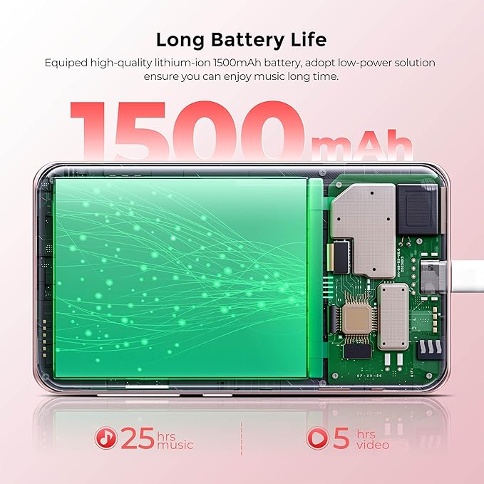 • 1500mAh Long Life Battery: This kids music player is equipped with a 1500mAh lithium battery and utilizes a low-power solution, enabling up to 25 hours of continuous music playback (with wired earbuds) or 5 hours of video. The spotify player features a Type-C charging port, and it takes just 2 hours to fully charge.