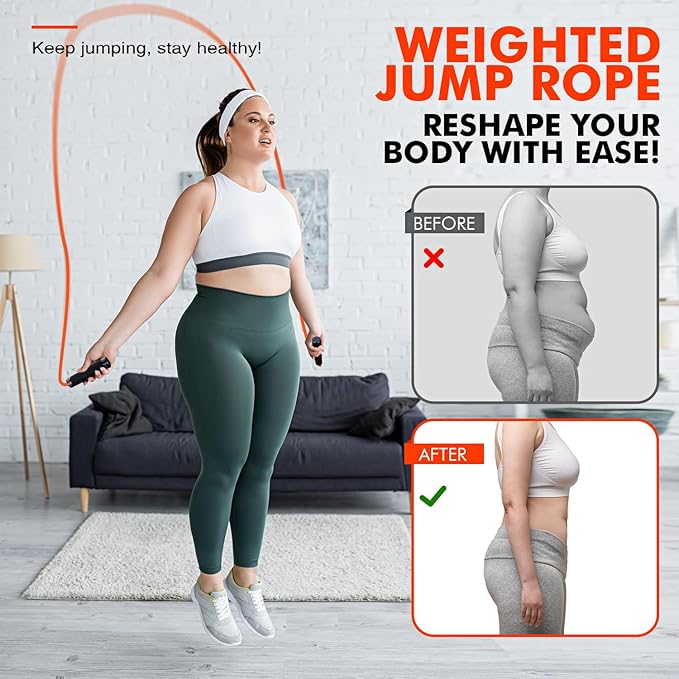 Jump Rope, Weighted Jump Rope for Men Women, Adjustable 1lb Heavy Skipping Ropes, Suitable for Boxing, Cardio, Home Fitness, Training Muscle, Home Gym Workout Equipment for Full Body Exercise