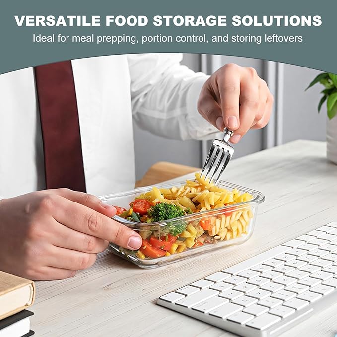 • PREMIUM QUALITY GLASS: Our glass meal prep containers are made from high-quality glass that is safe to use in the microwave, oven, freezer, and dishwasher. You can freeze or reheat your meals easily, ideal for everyday use. Please take off the lids when cooking and heating food.
