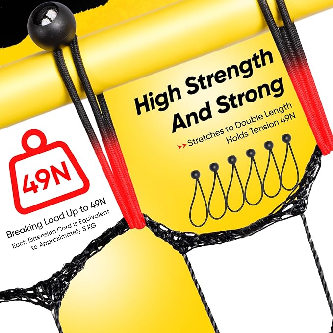 • SUPERIOR DURABILITY FOR MAXIMUM PERFORMANCE - Our volleyball training net system with durable 45ply HPDE polyester net, providing unparalleled strength and long-lasting. Thickened 1.2mm Anti-Rust coated powder steel providing reliable training tool that lasts (others 0.8mm). 30 imported bungee cords ensure even tension to deliver tournament-level rebound accuracy, making our volleyball practice net equipment is the perfect training partner for all session