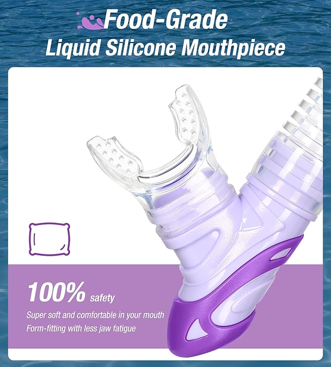 • Advanced top dry valve and splash guard: Aegend Dry snorkel profiled “paddle” dry top automatically closes when submerged, not allowing water entry. Even waves crash overhead, the splash-guard will prevent water from coming into the snorkel. Unlike the float ball valve which gets lodged easily by small sands or kinds of stuff, our new design valve won't be stuck, which give you comfortably breath.