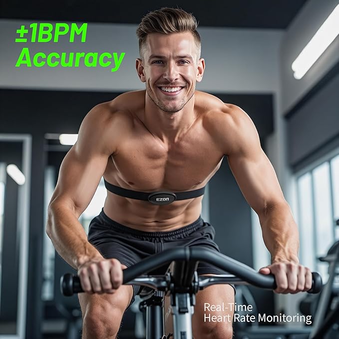 • ✔️ 𝑨𝒄𝒄𝒖𝒓𝒂𝒕𝒆 𝑯𝒆𝒂𝒓𝒕 𝑹𝒂𝒕𝒆 𝑻𝒓𝒂𝒄𝒌𝒊𝒏𝒈: This heart rate monitor chest strap provides precise readings with ±1 BPM accuracy. It uses ECG technology to deliver real-time heart rate data during walking, running, or workouts.