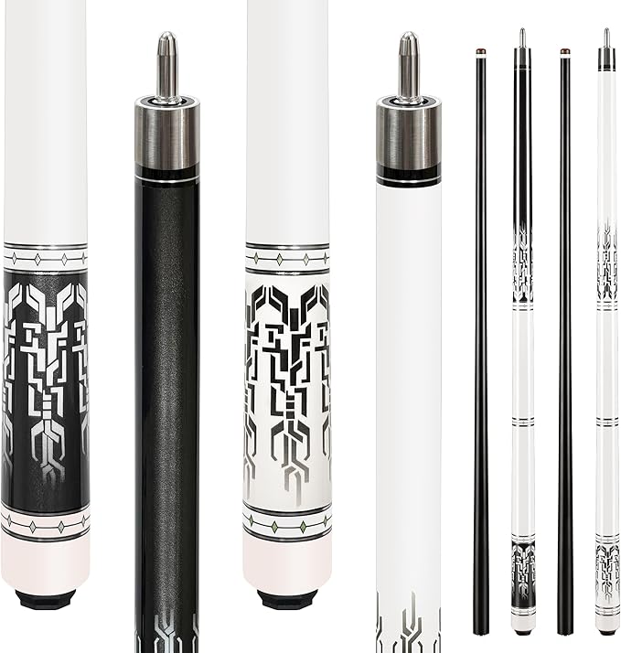 • ?�Premium Material?? Pool cue black section made of glass fiber, backend is made of Canadian maple wood maple wood, finished with matte paint. Features a two-piece pool cue stick design for easy transport and storage.