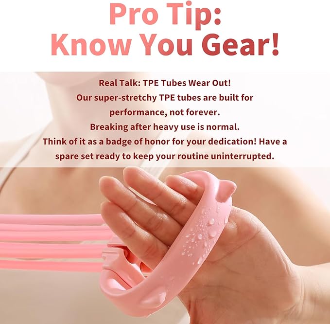 • Pro Tip: Know Your Gear! Our tubes are made of super-stretchy TPE – that's what gives you the awesome resistance & feel! Like any high-performance material under constant tension, TPE tubes will eventually wear out and break with regular use. This is normal and expected. The more you crush your workouts, the sooner you might need a fresh set! Keep rocking it! 💪