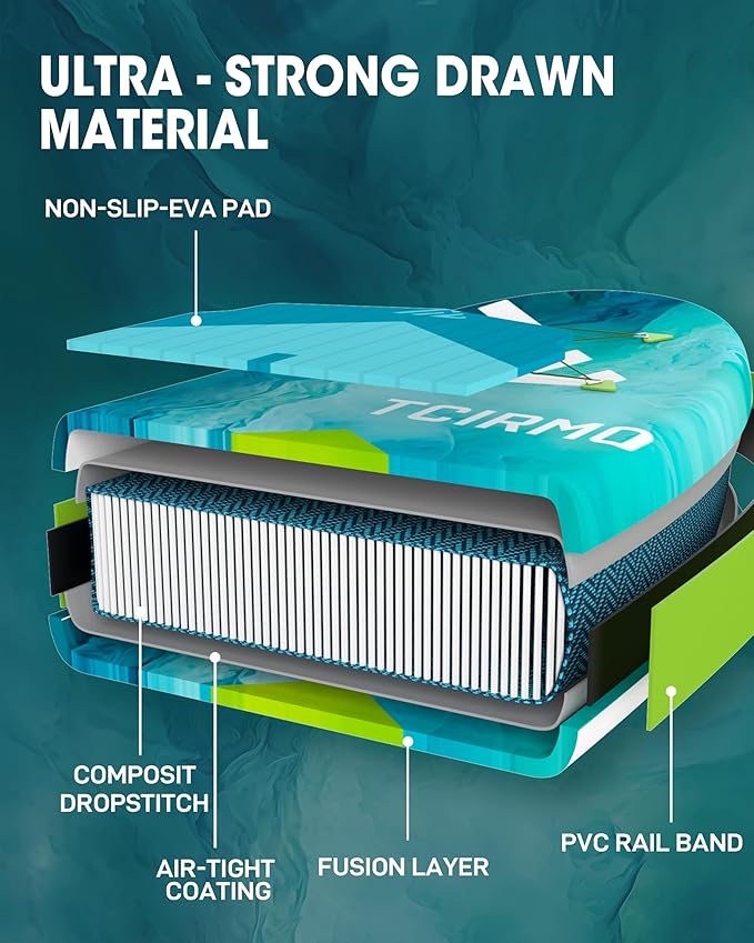 • 【WELDED RAIL TECHNOLOGY】: The Heat-Welded Rail Technology creates a completely airtight, mechanically bonded seam without the risk of glue weakening over time. This makes inflatable paddle board stronger and longer lasting.